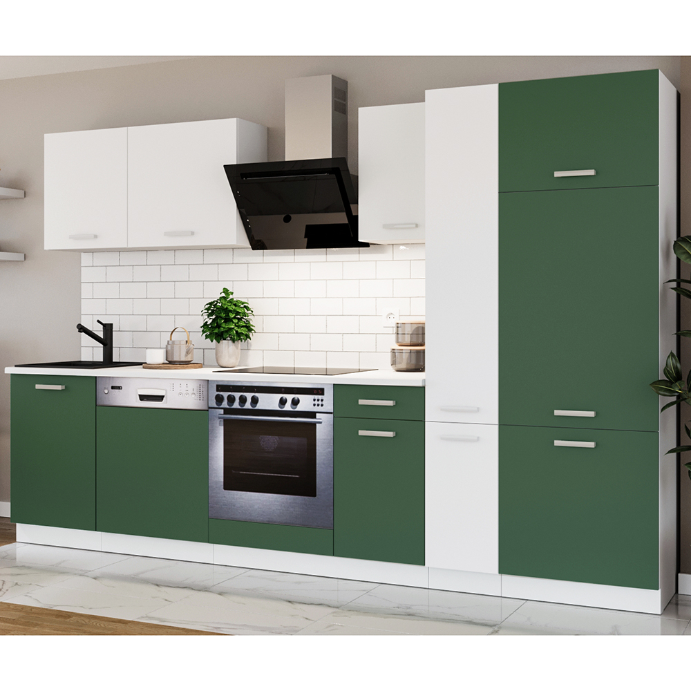 Kuchyňská linka TONI 300 cm | S PRACOVNÍ DESKOU | bílá/labrador zelená