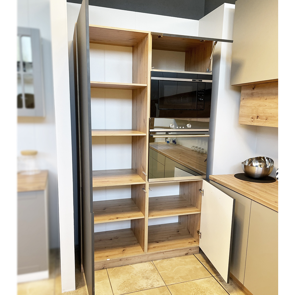 Modulovou kuchyňskou linku LANGEN si zaručeně oblíbíte díky její kvalitě a modernímu designu. Kolekce Langen nabízí rozmanité kombinace jednotlivých dílů. Korpus skříněk je vždy v dekoru dubu artisan. Skříňky lze objednat s dvířky v dekoru dubu artisan a odstínech světle šedobéžové a tmavě šedé. K některým skříňkám Langen dodáváme systém PUSH TO OPEN (stiskni a otevři) nebo pouze černé úchyty s klasickým otvíráním. Zásuvky jsou opatřeny ložiskovými pojezdy s funkcí tichého dojezdu zajišťující hladkou manipulaci. Korpus i dvířka nábytku Langen tvoří kvalitní laminátová dřevotříska LTD o síle 16 mm s ochrannou ABS hranou. Záda skříněk zpevňují HDF desky v bílém omyvatelném odstínu z vnitřní strany. Součástí spodních skříněk jsou krycí sokly se sponami, které se uchytí k nohám. Výšku spodních skříněk si můžete upravovat pomocí štelovacích nožiček do maximální výšky 10 cm. Zboží Vám dodáme v demontu s podrobným návodem na sestavení a kováním. Montáž je snadná a rychlá. Ke kuchyňské lince Langen nabízíme také pracovní desky ve několika dekorech.