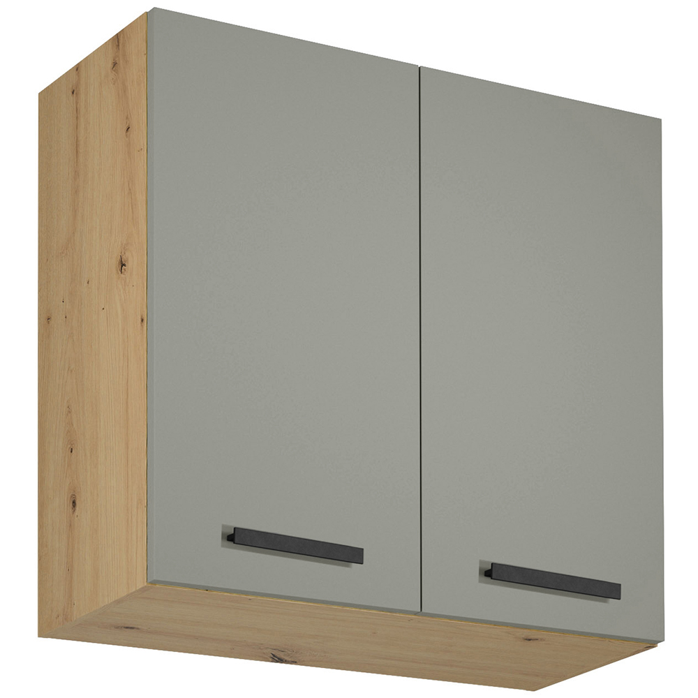 Horní skříňka Langen G80 - Modulovou kuchyňskou linku LANGEN si zaručeně oblíbíte díky její kvalitě a modernímu designu. Kolekce Langen nabízí rozmanité kombinace jednotlivých dílů. Korpus skříněk je vždy v dekoru dubu artisan. Skříňky lze objednat s dvířky v dekoru dubu artisan a odstínech světle šedobéžové a tmavě šedé. K některým skříňkám Langen dodáváme systém PUSH TO OPEN (stiskni a otevři) nebo pouze černé úchyty s klasickým otvíráním. Zásuvky jsou opatřeny ložiskovými pojezdy s funkcí tichého dojezdu zajišťující hladkou manipulaci. Korpus i dvířka nábytku Langen tvoří kvalitní laminátová dřevotříska LTD o síle 16 mm s ochrannou ABS hranou. Záda skříněk zpevňují HDF desky v bílém omyvatelném odstínu z vnitřní strany. Součástí spodních skříněk jsou krycí sokly se sponami, které se uchytí k nohám. Výšku spodních skříněk si můžete upravovat pomocí štelovacích nožiček do maximální výšky 10 cm. Zboží Vám dodáme v demontu s podrobným návodem na sestavení a kováním. Montáž je snadná a rychlá. Ke kuchyňské lince Langen nabízíme také pracovní desky ve několika dekorech.