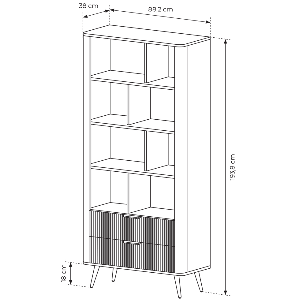 Regál LANTE A disponuje 4 policemi a 2 zásuvkami.