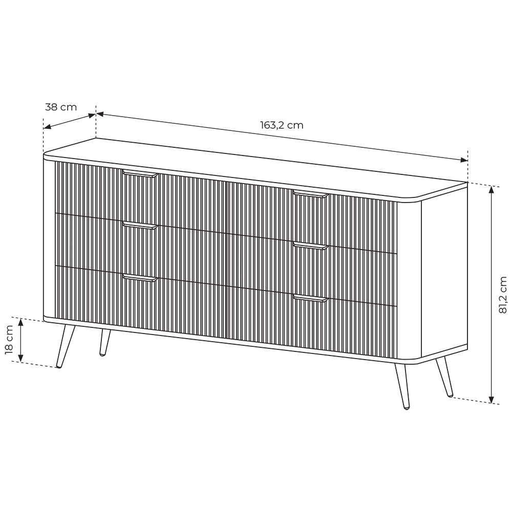 Komoda LANTE B 163 6s disponuje 6 zásuvkami.