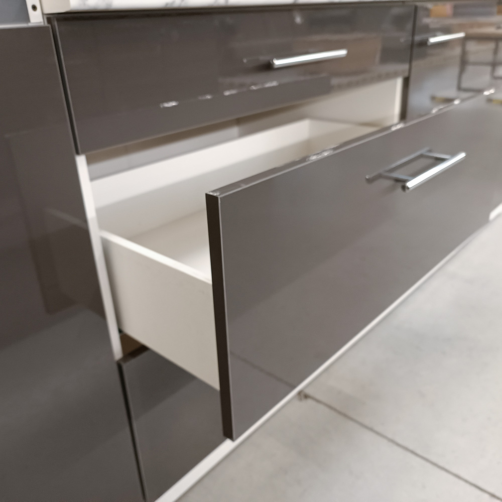 Představujeme Vám modulovou kolekci kuchyňské linky LARA, která se vyznačuje moderním designem v jednoduchém stylu, který se neokouká ani po letech. Kontrastní kombinace bílého matného korpusu a dvířek v šedém lesku vytváří elegantní a nadčasový vzhled. Celkový design skvěle doplňují kovové stříbrné úchytky, které dodávají kuchyni šmrnc.