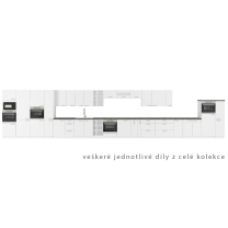 Kolekce kuchyňské linky LARA WHITE nabízí širokou škálu jednotlivých skříněk i již předdefinovaných sestav, ze kterých si snadno sestavíte kuchyňskou linku na míru podle svých představ.