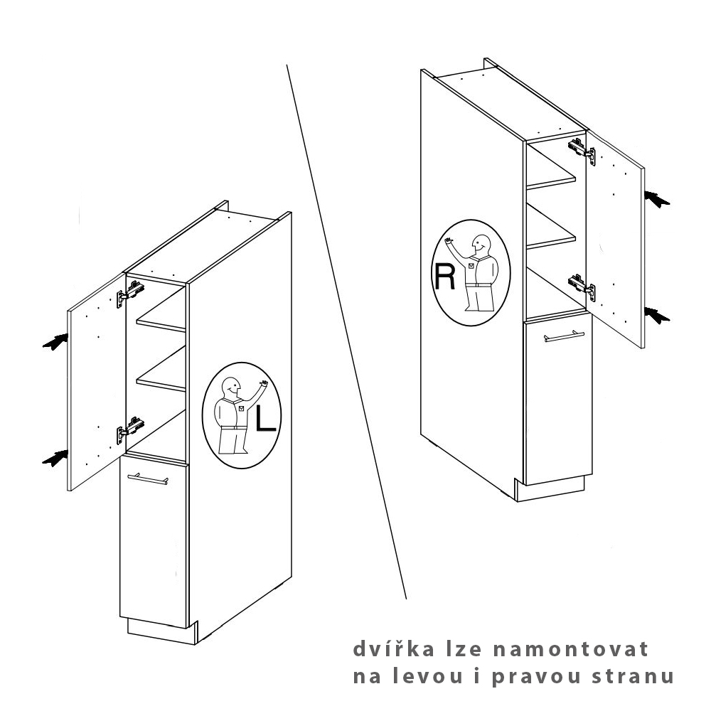 Kuchyňská skříňka LARA 30DK-162 2F disponuje výsuvnými drátěnými policemi CARGO, které jsou za spodními dvířky. Za horními dvířky najdete 2x standardní polici. Horní dvířka mají univerzální provedení a lze je namontovat na levou i pravou stranu. Na horní část této skříňky je nutné instalovat pracovní desku.