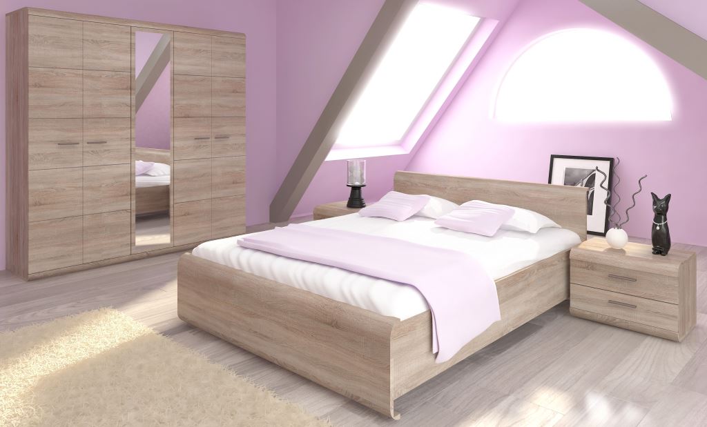 Link - dvoulůžko 160 + ROŠT + MATRACE - dub sonoma