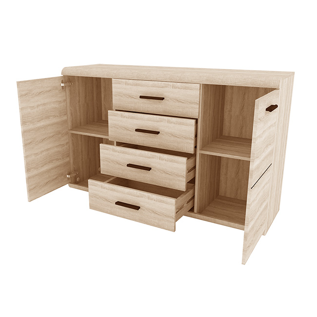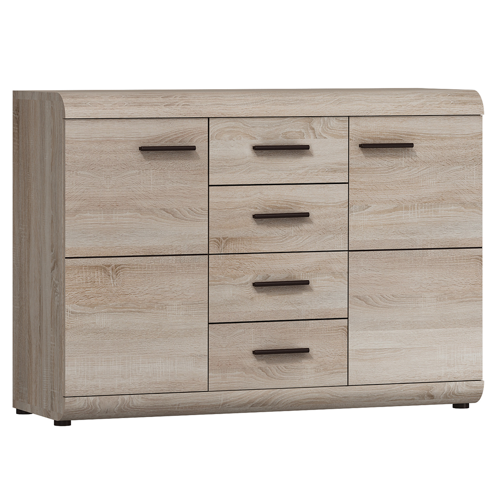 Nábytkový systém Link vnese do Vašich prostorů příjemný dřevěný tón. Kolekce Link nabízí širokou škálu jednotlivých dílů, ze kterých si snadno sestavíte ložnici, obývák či dětský pokoj. Do některých dílů si lze objednat LED osvětlení pro zpříjemnění večerů. Nábytek je vyroben z kvalitní laminátové dřevotřísky o síle 16 mm v odstínu dub sonoma. Korpus skříněk je opatřen ochranou ABS hranou. Většina dílů této kolekce disponuje oblými MDF hranami. Úchytky jsou v černém odstínu. Skleněné části jsou zbarvené do hnědého odstínu. Zboží Vám dodáme v demontu s návodem na sestavení a kováním.