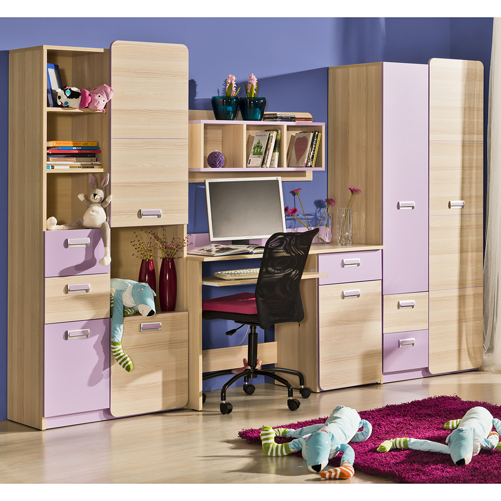 Lorento regál L15 - Dětský pokoj Lorento si Vaše děti zaručeně zamilují. Kolekce Lorento nabízí širokou škálu jednotlivých dílů i sestav, ze kterých si snadno sestavíte pokojíček na míru podle potřeb. Nábytek Lorento je vhodný pro předškoláky, školáky i studenty. Příjemná barevná kombinace světlého dekoru dřeva jasan coimbra a fialové vytvoří to pravé prostředí pro hraní i učení. Nábytku Lorento dodávají moderní vzhled oblé úchytky a oblé hrany některých desek. Nábytek je vyroben z kvalitní laminátové dřevotřísky o síle 16 mm s ochrannou ABS hranou. Záda zpevňují HDF desky s omyvatelnou vnitřní stranou. Zásuvky jsou opatřeny ložiskovými pojezdy, které zajišťují hladký posun. Zboží Vám dodáme v demontu s podrobným návodem na sestavení a kováním.