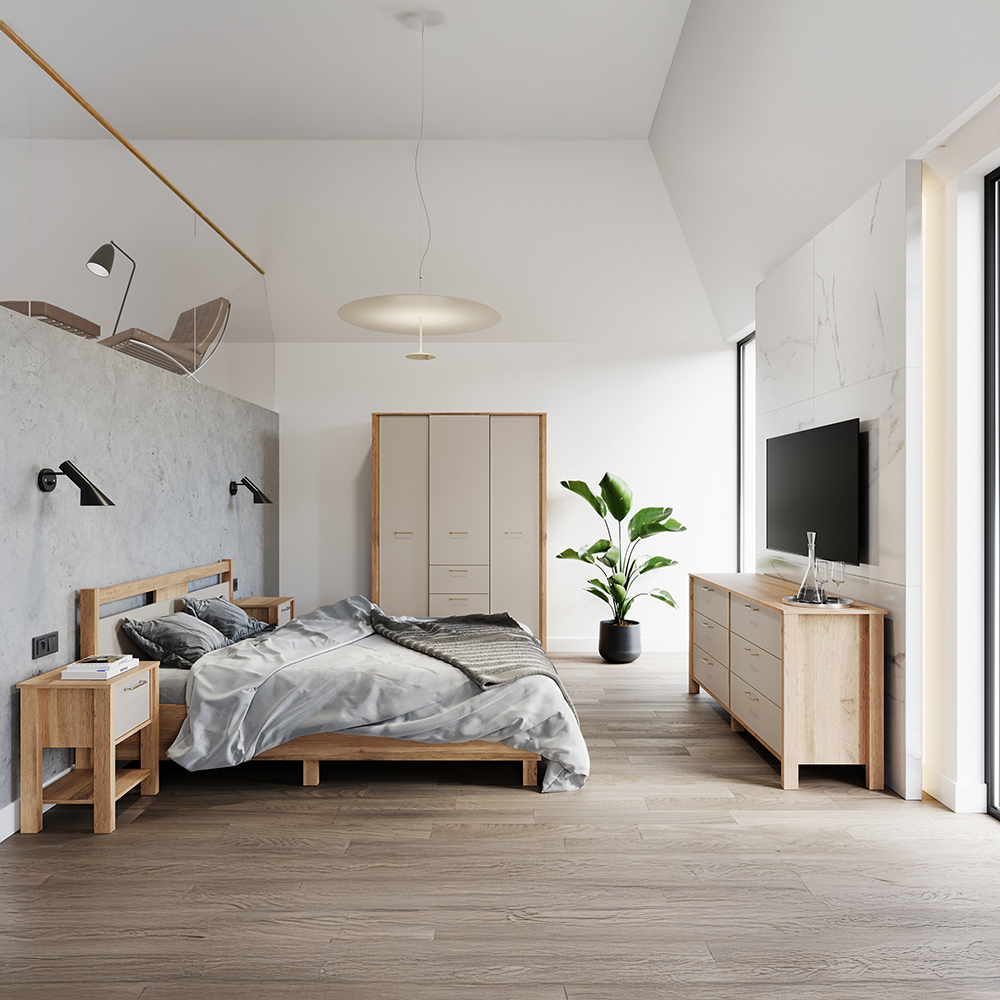 Ložnice INDYGO b sestava A | 5 dílů | dub wotan/béžová