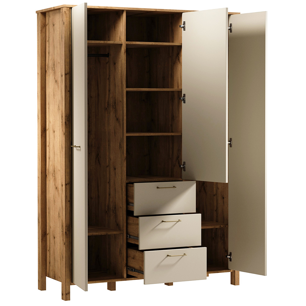 - 1x šatní skříň S3D3S - 3 zásuvky, 7 polic, 2x šatní tyč
