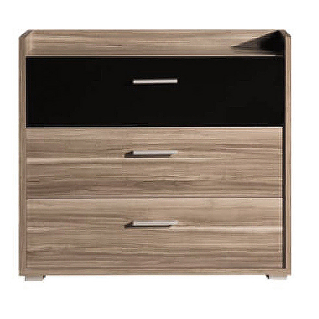 Komoda - Ložnice Margo Vás zaujme svým svěžím vzhledem a moderním designem. Tato kolekce vyniká především oblíbenou barevnou kombinací dub sonoma/bílá lesk nebo dub trufla/černá lesk. Nábytek je vyroben z kvalitní laminátové dřevotřísky. Zboží Vám dodáme v demontu s návodem na sestavení a kováním.