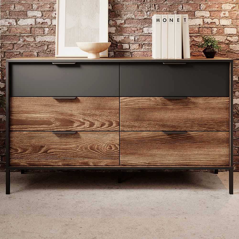 MILTON l komoda 6S | 137,3 cm | kaštan/antracit
