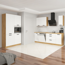 Každý prvek kuchyňské linky LUNA byl navržen s ohledem na estetiku a funkčnost. Dvířka s decentním 3D povrchem v bílém odstínu a černé kovové úchytky přidávají celé sestavě nádech elegance. Korpus z kvalitní laminátové dřevotřísky v dekoru dub artisan a dvířka z MDF desek o síle 19 mm zajišťují odolnost a dlouhou životnost. Navíc panty s tichým dovíráním přispívají k poklidné a harmonické atmosféře Vaší kuchyně.