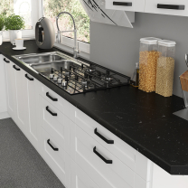 Každý prvek kuchyňské linky LUNA byl navržen s ohledem na estetiku a funkčnost. Dvířka s decentním 3D povrchem a černé kovové úchytky přidávají celé sestavě nádech elegance. Korpus z kvalitní laminátové dřevotřísky a dvířka z MDF desek o síle 19 mm zajišťují odolnost a dlouhou životnost. Navíc panty s tichým dovíráním přispívají k poklidné a harmonické atmosféře Vaší kuchyně.