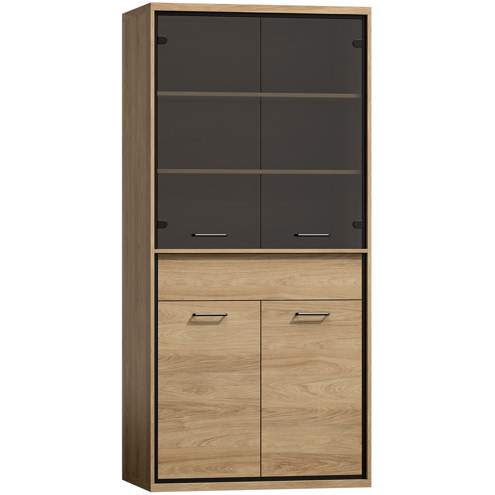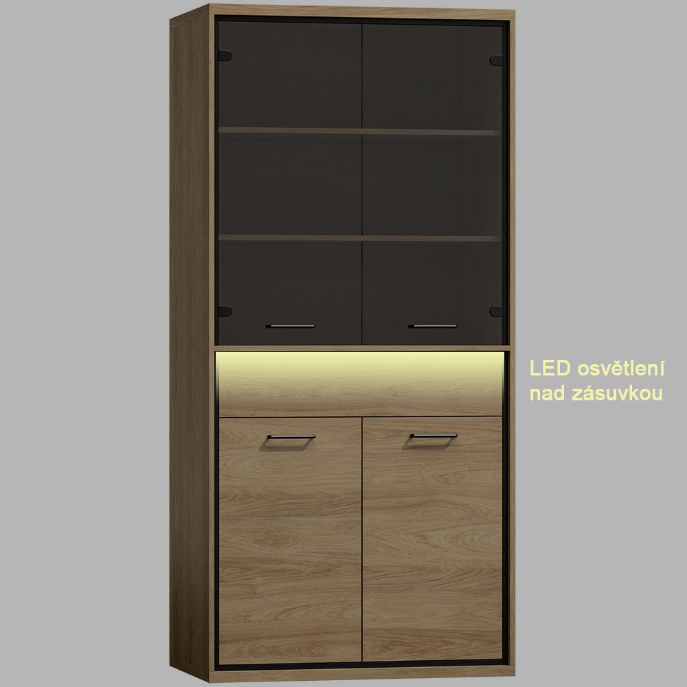 Vitrína Mediolan M3 - Hledáte nábytek ve světle dřevěném dekoru do své ložnice či obývacího pokoje? Tak právě nábytkový systém Mediolan může být pro Vás to pravé ořechové. Tato kolekce nábytku je navržena v jednoduchém moderním designu s elegantními detaily. Mediolan nabízí širokou škálu komod, skříní a dalšího vybavení obýváku a ložnice. Nábytek si lze zakoupit v již předdefinovaných sestavách, nebo jednotlivě podle vlastních potřeb. Zboží Vám dodáme v demontu s podrobným návodem na sestavení a kováním. Nábytek je vyroben z kvalitních laminátových dřevotřískových desek LTD o síle 16 mm. Úchyty zásuvek a dveří jsou vyrobené z kovu v černé barvě. Ke komodám a k menším skříním si můžete u nás objednat kovové nohy, které nábytku dodají skandinávský nádech.