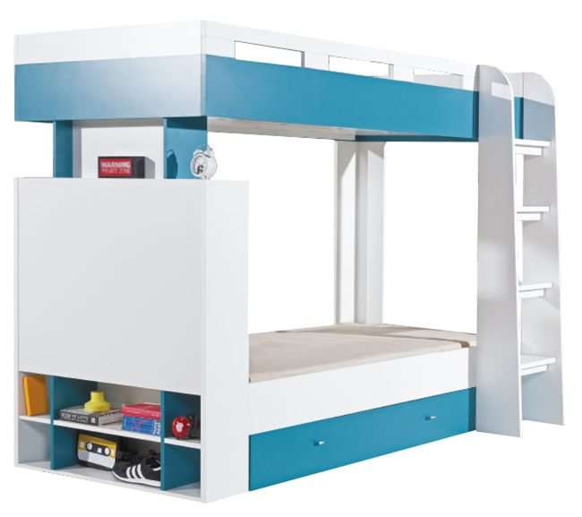 DomůDětský pokojKolekce pokojíčkůDětský pokoj MOBI | bílá mat/tyrkysMobi - patrová postel MO19 + 2x MATRACE - modrá
