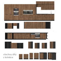 Design kuchyňské linky MONZA je vrcholem modernosti, který klade důraz na jednoduchost a čistotu linií. Přináší s sebou harmonickou barevnou kombinaci, která působí nejen esteticky příjemně, ale i uklidňujícím dojmem. Dvířka v tmavém dekoru ořechu okapi kontrastují s vnějším černým korpusem, zatímco bílý vnitřek skříněk nabízí perfektní přehled a ulehčuje udržování čistoty.