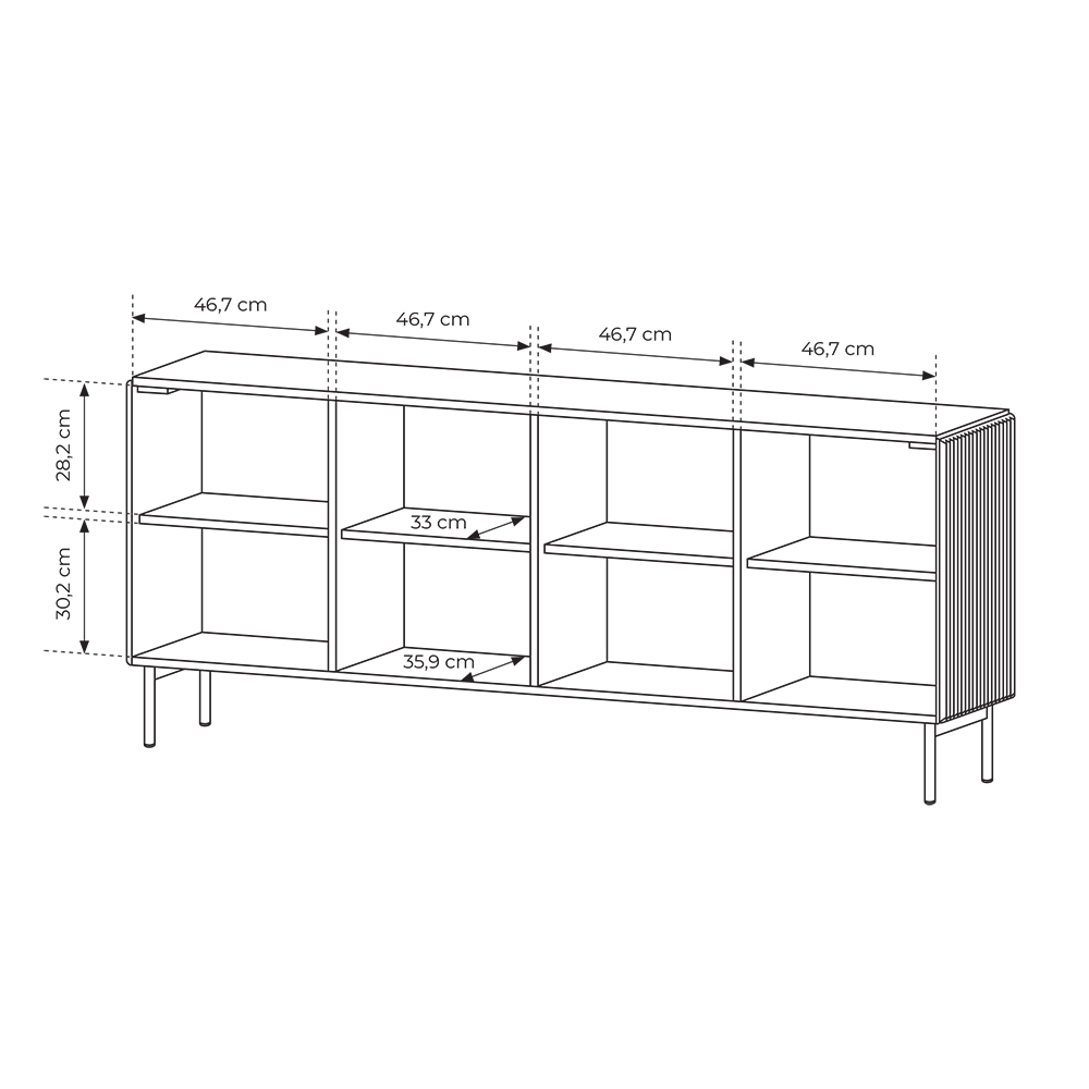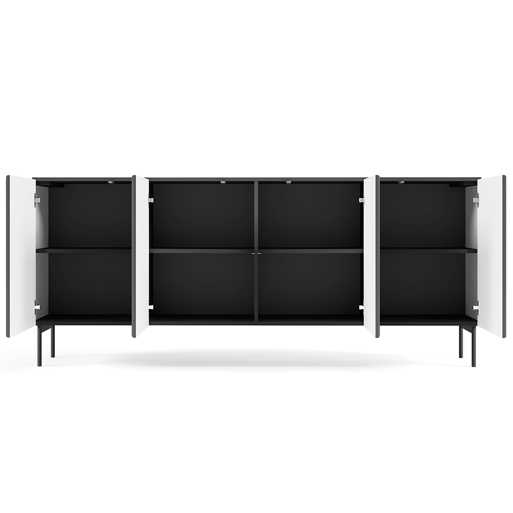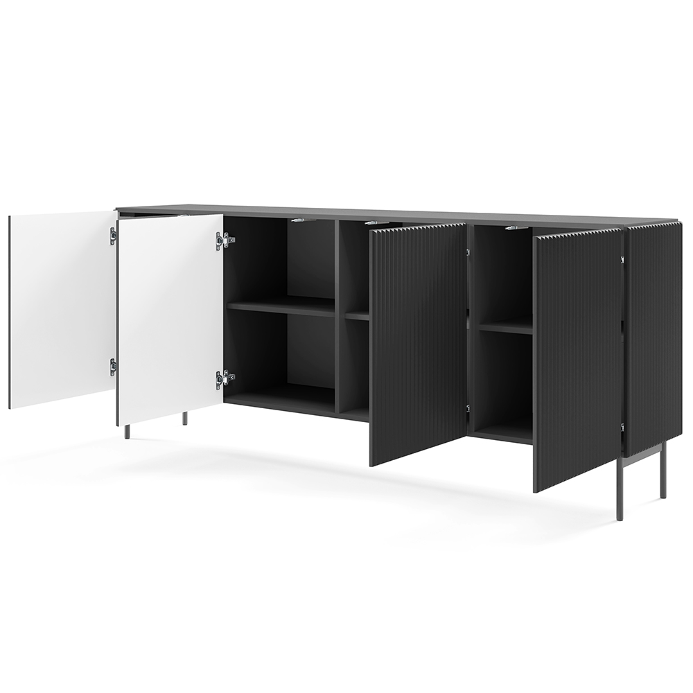 Komoda MUTI 195 4D disponuje 8 policemi za dvířky.