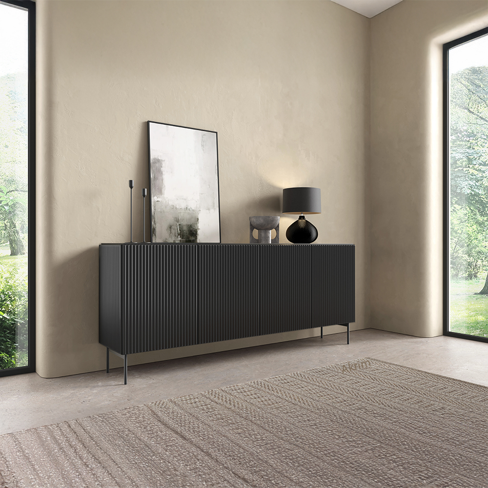 MUTI ČERNÁ – moderní obýváková kolekce s drážkováním a čistými liniemi