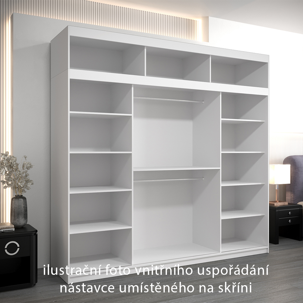 Nástavec ABIKS 250x40x62 cm | bílá/černá | pro posuvné skříně