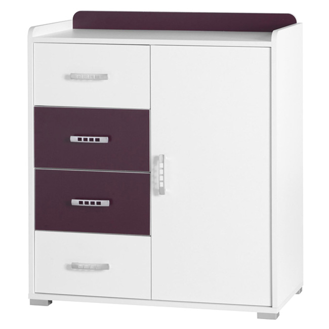 Komoda 6 - Studentský/Dětský pokoj Nemo je ideální pro děti v každém věku. Tato kolekce prosvětlí a osvěží dětské prostory a vytvoří tak příjemné prostředí, jak na hraní, tak i na učení. Nábytek je vyroben z kvalitní laminátové dřevotřísky v atraktivním odstínu bílá/fialová lesk. Zboží Vám dodáme v demontu s návodem na sestavení a kováním.