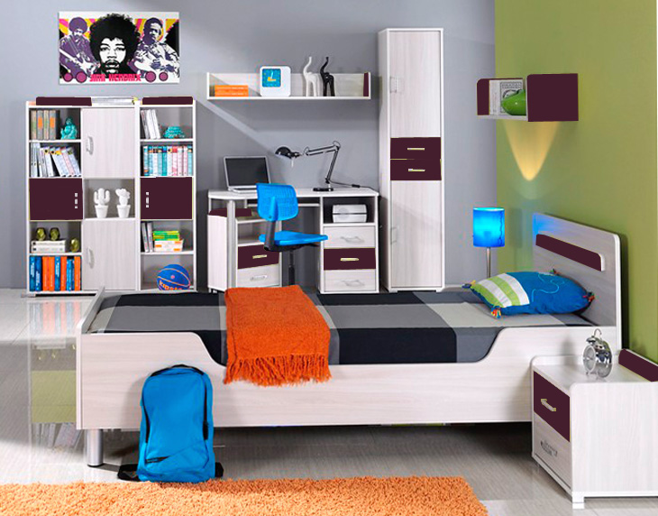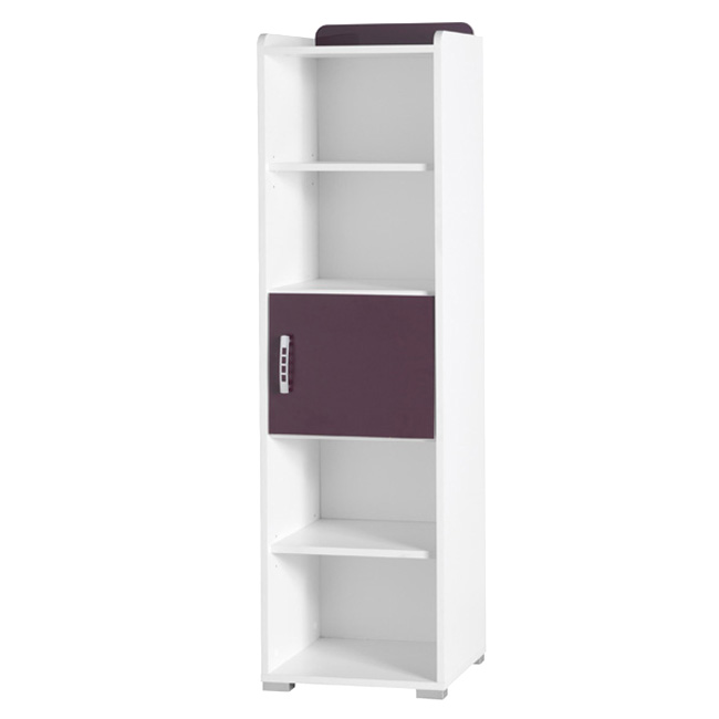 Regál 5 - Studentský/Dětský pokoj Nemo je ideální pro děti v každém věku. Tato kolekce prosvětlí a osvěží dětské prostory a vytvoří tak příjemné prostředí, jak na hraní, tak i na učení. Nábytek je vyroben z kvalitní laminátové dřevotřísky v atraktivním odstínu bílá/fialová lesk. Zboží Vám dodáme v demontu s návodem na sestavení a kováním.