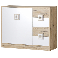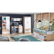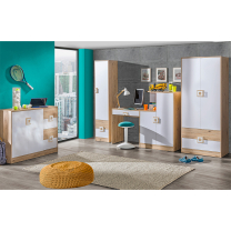Regál Nico 4 - Hledáte dětský pokojíček v neutrálních barvách? Nico v barevné kombinaci dub světlý/bílá bude pro Vás tou pravou volbou. Tato barevná kombinace osvěží a prosvětlý i menší pokojíky. Kombinace je neutrální a je vhodná pro holky i kluky. Ani po letech se neokouká a nábytek tak poslouží dětem předškolního věku i studentům. Dětský pokoj Nico nabízíme i v dalších barevných kombinacích. Pokojíček si můžete objednat již v předdefinovaných sestavách i po jednotlivých dílech. Snadno si tak sestavíte pokojíček podle svých představ a možností. Nábytek je vyroben z kvalitní laminátové dřevotřísky o síle 16 mm s ochrannou ABS hranou. Záda tvoří HDF desky. Zásuvky jsou opatřeny ložiskovými pojezdy, které zajistí hladký posun. Zboží Vám dodáme v demontu s podrobným návodem na sestavení a kováním.
