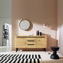 Obývací systém Nordi patří mezi moderní typ nábytku s nádechem retro stylu. Tuto kolekci nabízíme v atraktivní kombinaci bílá lesk/dub riviera a dub artisan/černá. K vitrínám je možné dokoupit LED osvětlení, které vytvoří příjemnou atmosféru ve večerních hodinách. Lze si zakoupit celou sestavu nebo i jednotlivé díly. Nábytek je vyroben z kvalitní laminátové dřevotřísky o síle 16mm s ochranou ABS lištou. Nohy jsou dřevěné a vysoké 20 cm. Skleněné poličky jsou z tvrzeného skla 4mm. Zboží Vám dodáme v demontu s návodem na sestavení a kováním.