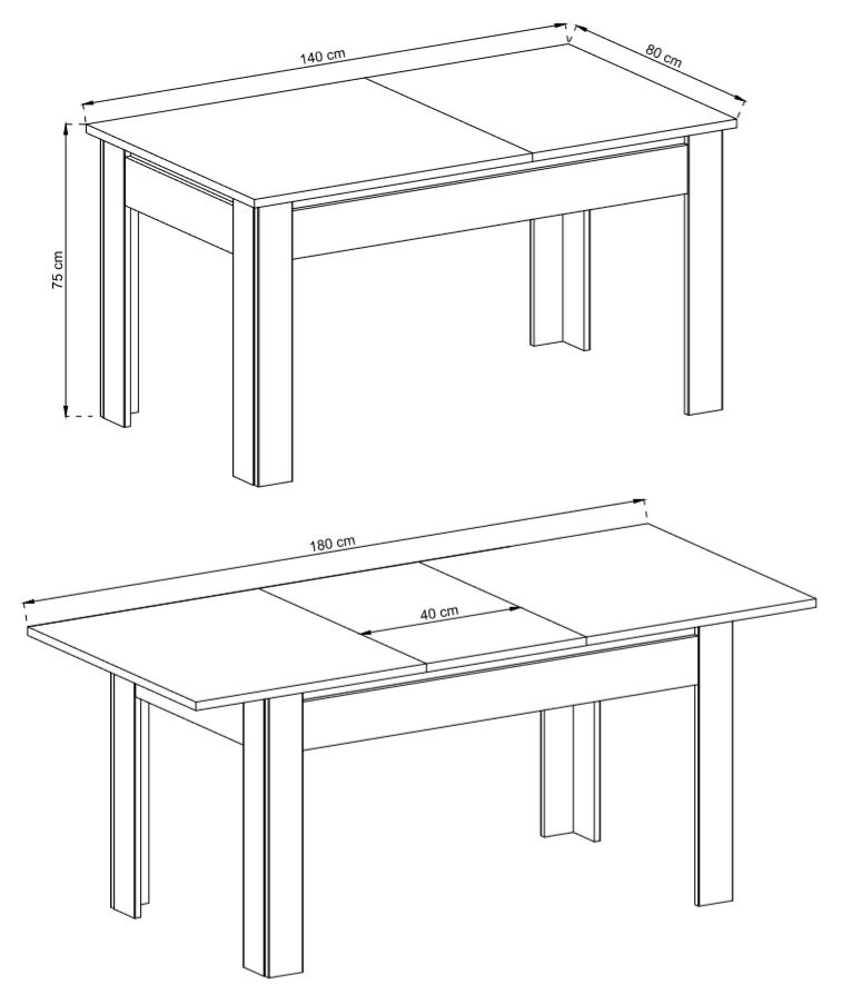 Šířka jídelní stůl AL140 - rozkládací | 140-180 cm |