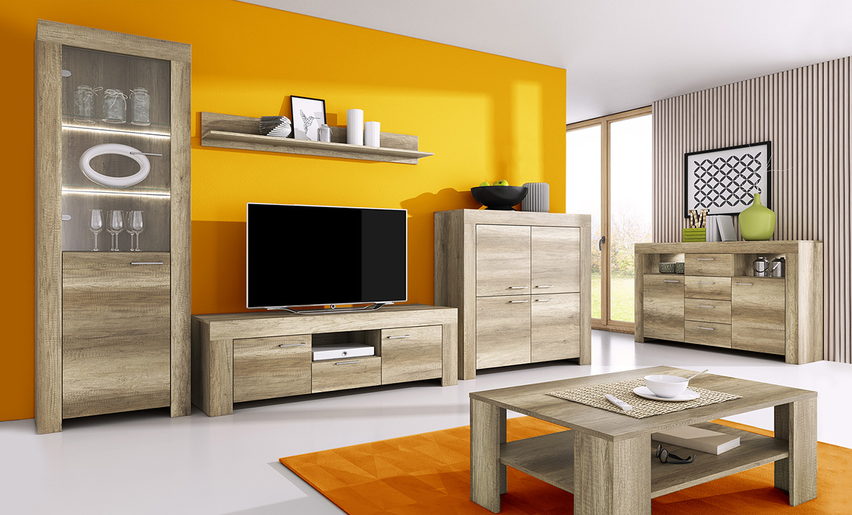 Sestava A - Obývací sestava Seton dodá Vašemu obývacímu pokoji moderní vzhled. Tuto kolekci nabízíme v netradičním odstínu country šedá. K některým dílům si lze objednat LED osvětlení, které zpříjemní večery ve Vašem pokoji. Nábytek je vyroben z kvalitní laminátové dřevotřísky s ochranou ABS. Zboží Vám dodáme v demontu s návodem na sestavení a kováním.