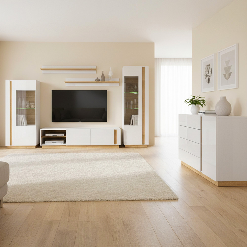 Obývací stěna ARCO sestava E | bílá lesk | 5 dílů