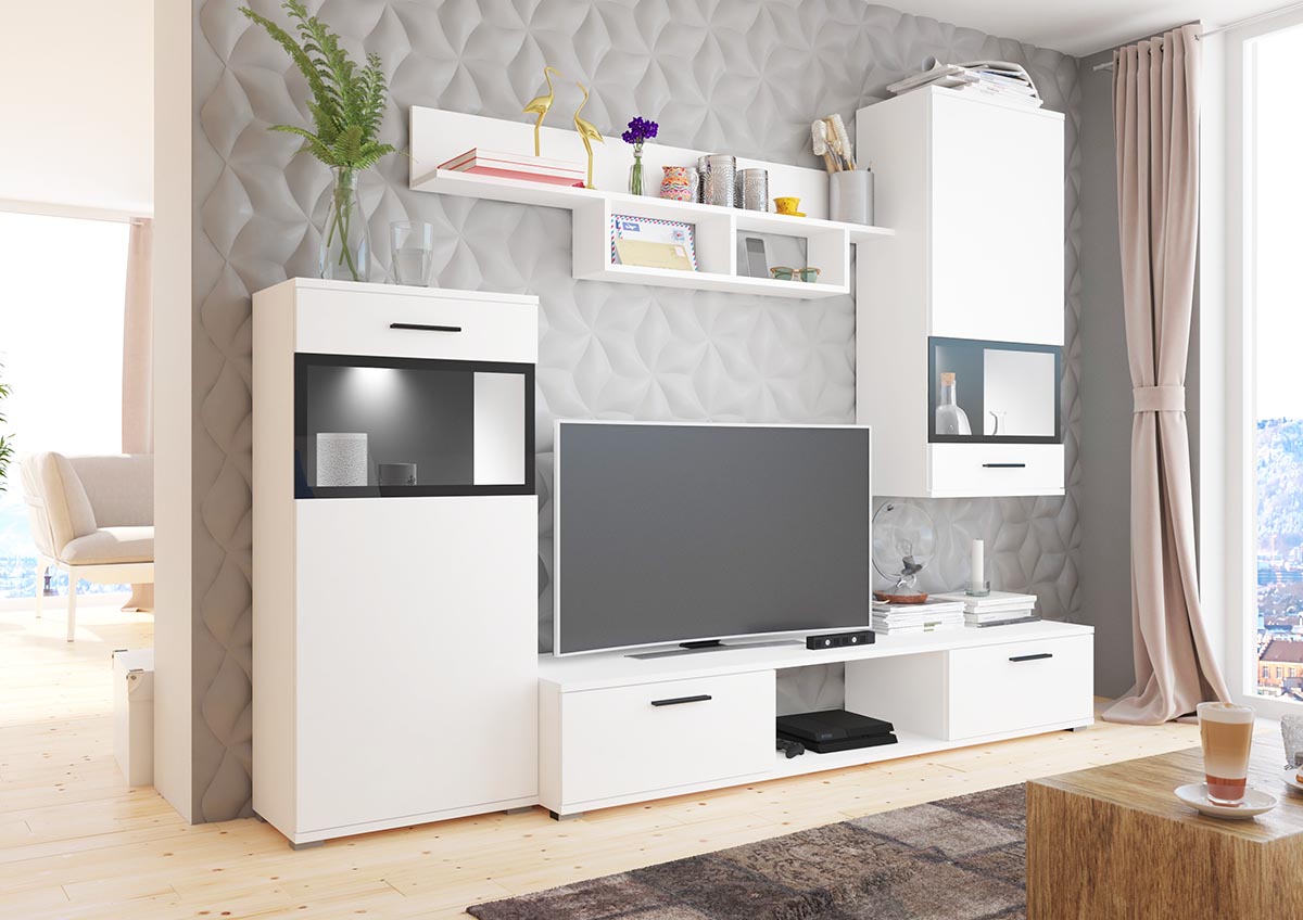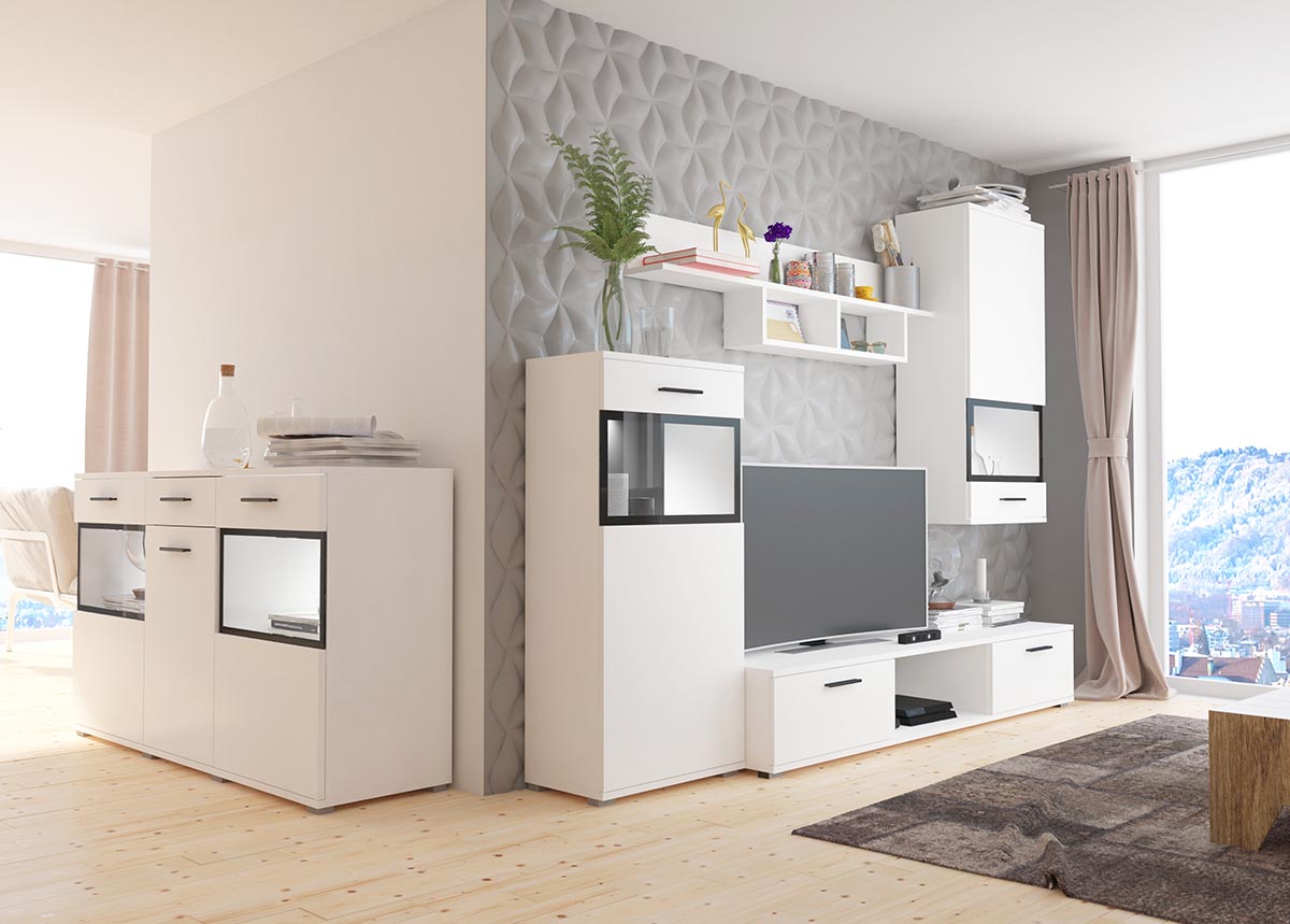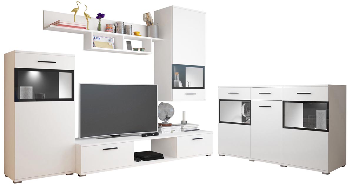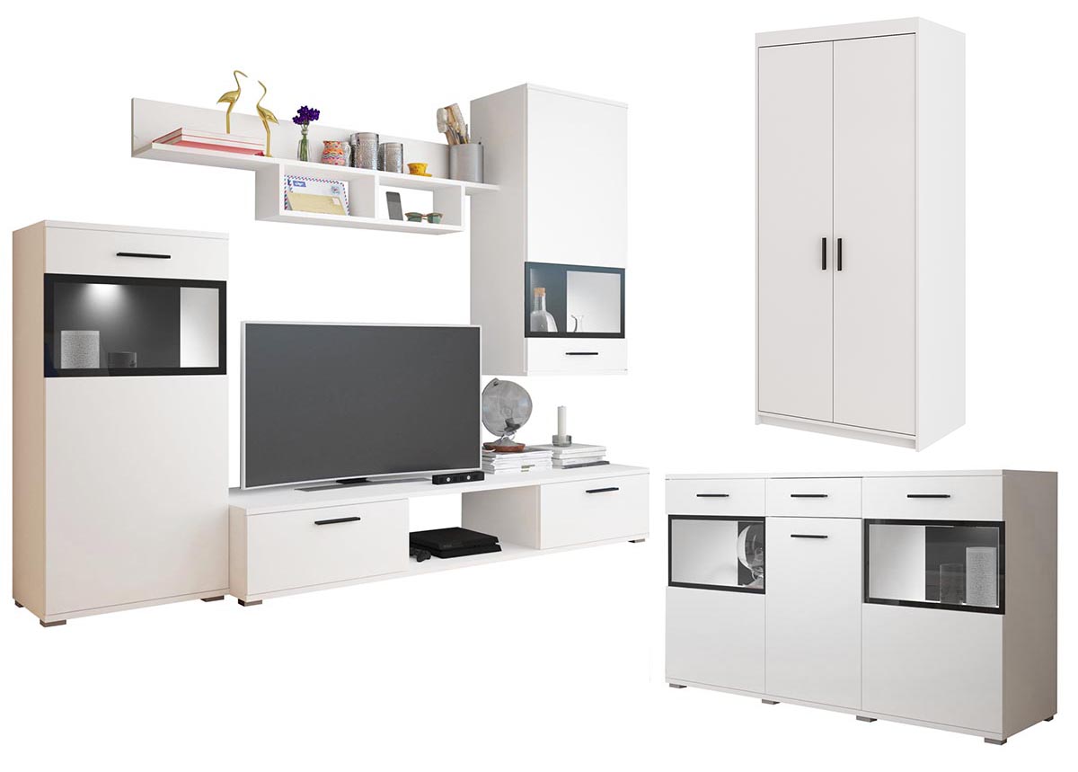 Obývací stěna BLUES + komoda + Elena 2D - bílá