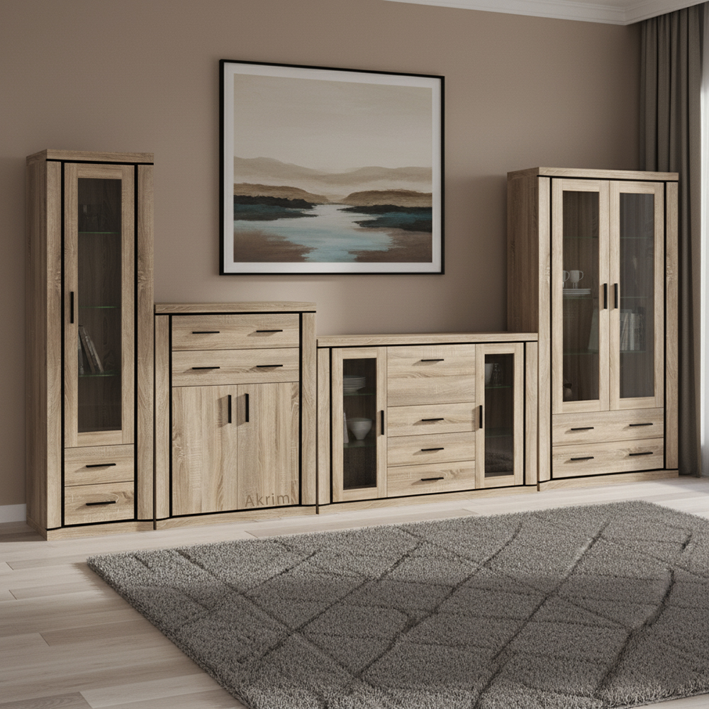 - Každý kus nábytku je dodáván v demontu, balený s veškerým potřebným kováním a podrobným návodem na sestavení. Díky tomu si obývací pokoj snadno snadno a bez komplikací.
