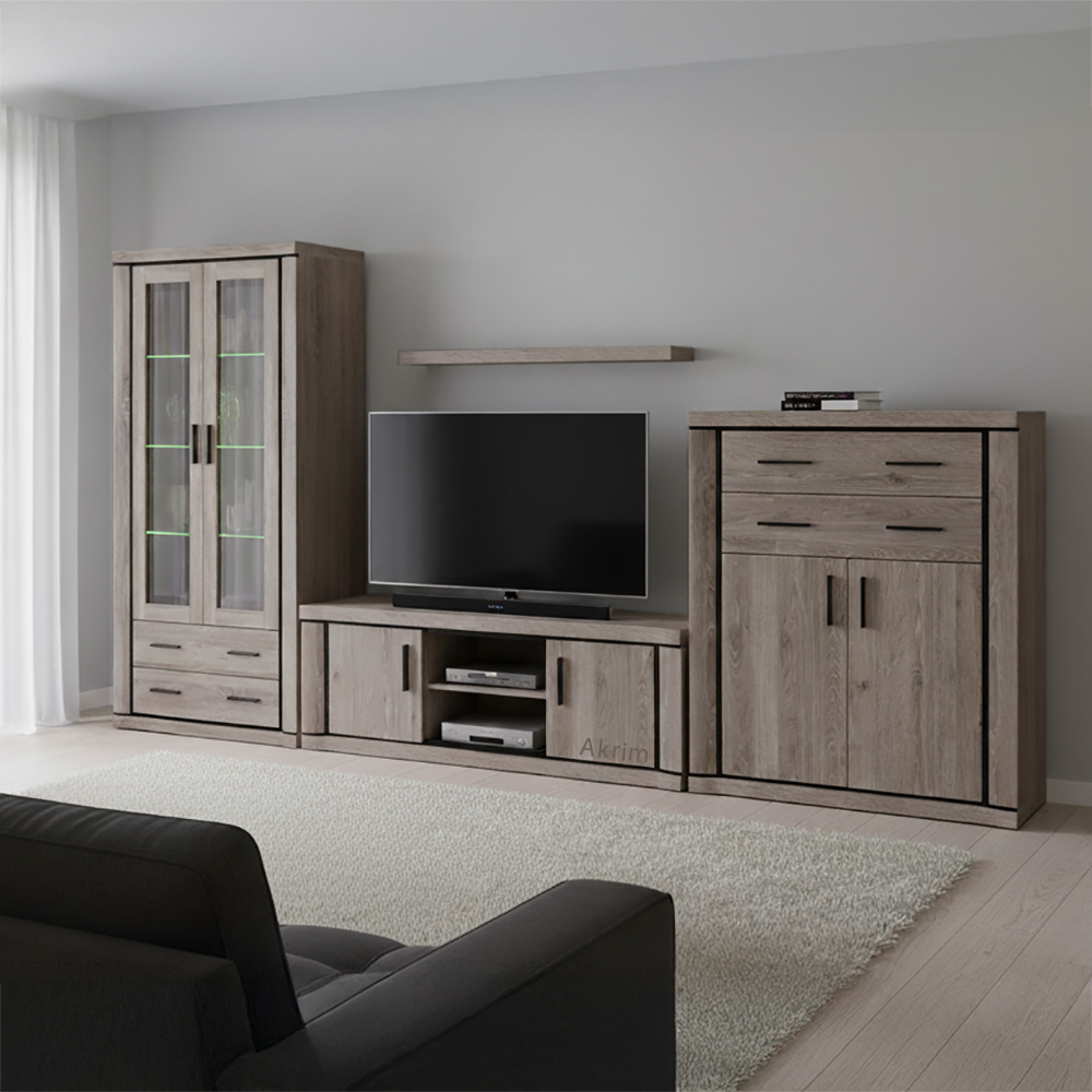 Obývací pokoj Dallas nabízí širokou škálu komod, skříňí a dalšího vybavení. Snadno si s touto kolekcí zařídíte velký i menší obývací pokoj podle vlastních představ. Zajímavost systému Dallas představují elegantní zaoblené hrany. Nábytek je vyroben z kvalitní laminátové dřevotřísky o síle 16 mm s ochrannou ABS hranou. Spodní a vrchní desky jsou zesílené na 48 mm a dodávají tak nábytku bytelný a masivní vzhled. Zboží Vám dodáme v demontu s podrobným návodem na sestavení a kováním. K vitrínám z této kolekce doporučujeme zakoupit LED osvětlení, které zpříjemní tmavé večery v obývacím pokoji. Zásuvky jsou opatřeny kolečkovými pojezdy a plastovými madly v černém odstínu.