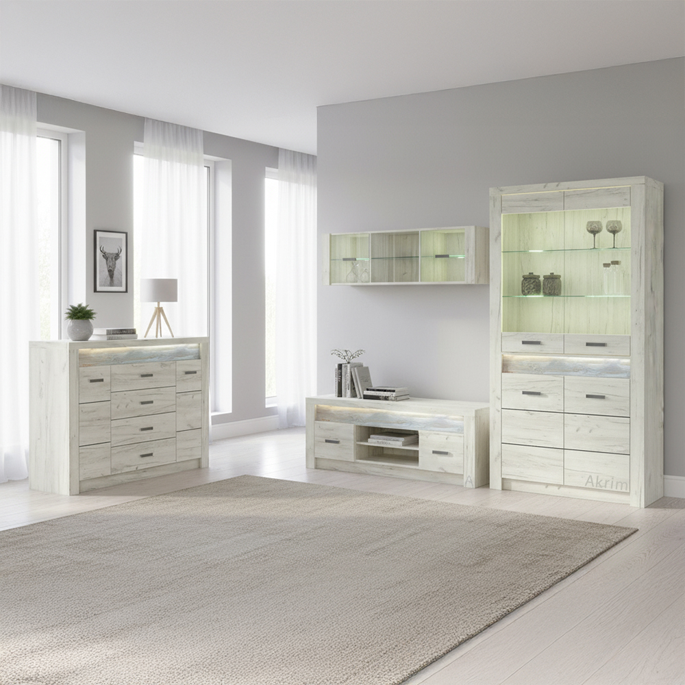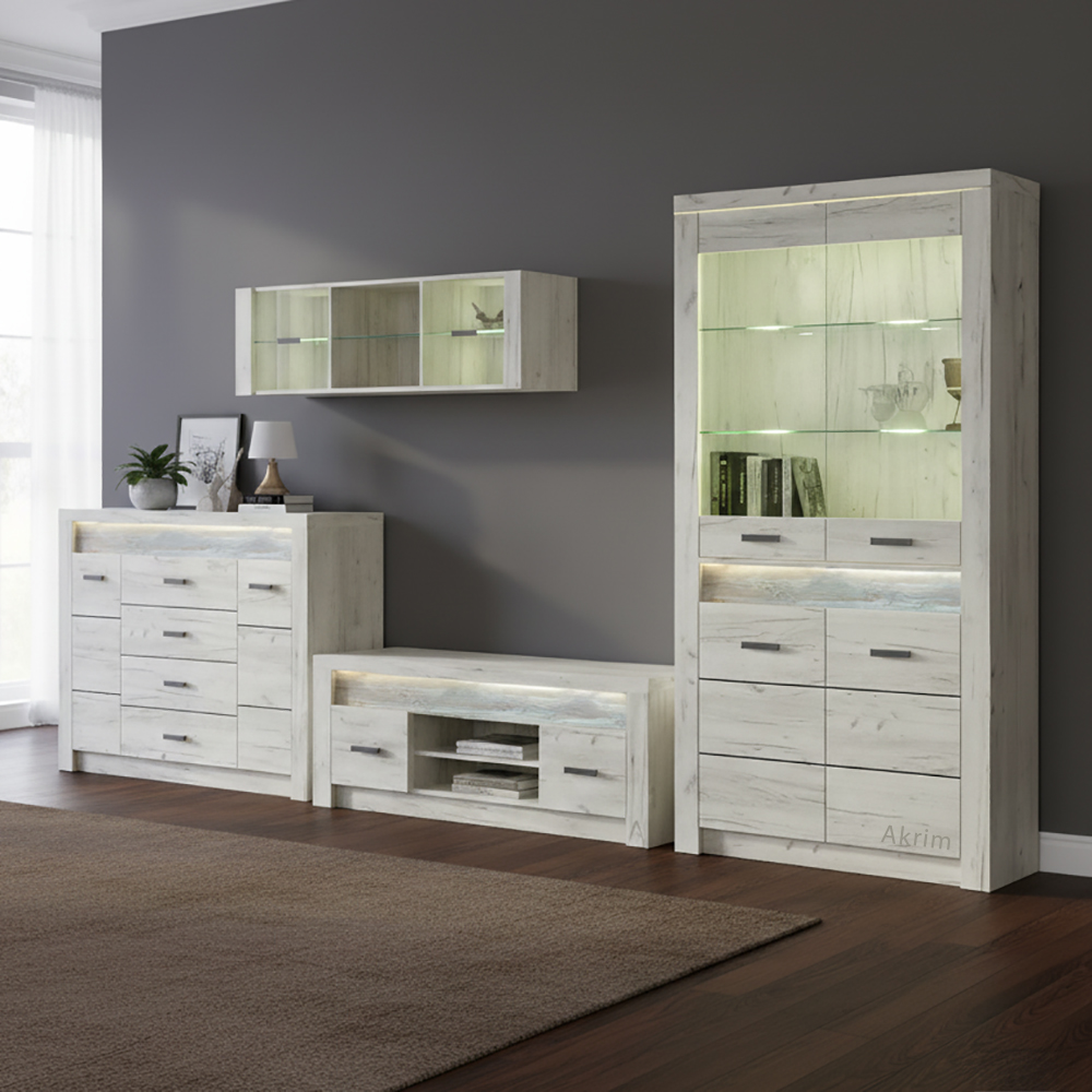 DomůObývákObývákové kolekceObývák INDIANAPOLIS | kraft bílýObývací stěna INDIANAPOLIS k sestava F | kraft bílý