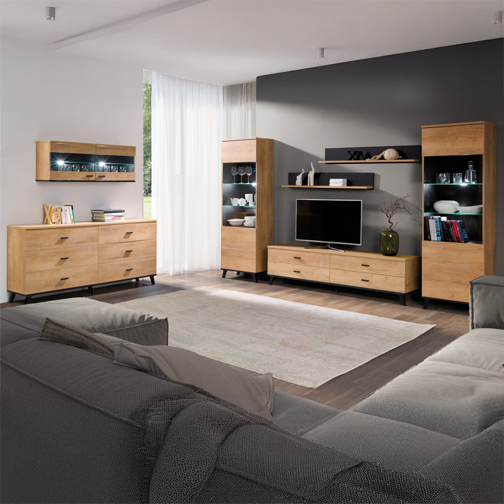 DomůObývákObývákové kolekceObývák JOHN | lefkas světlý/černáObývací stěna JOHN sestava A | 7 dílů | lefkas světlý/černá