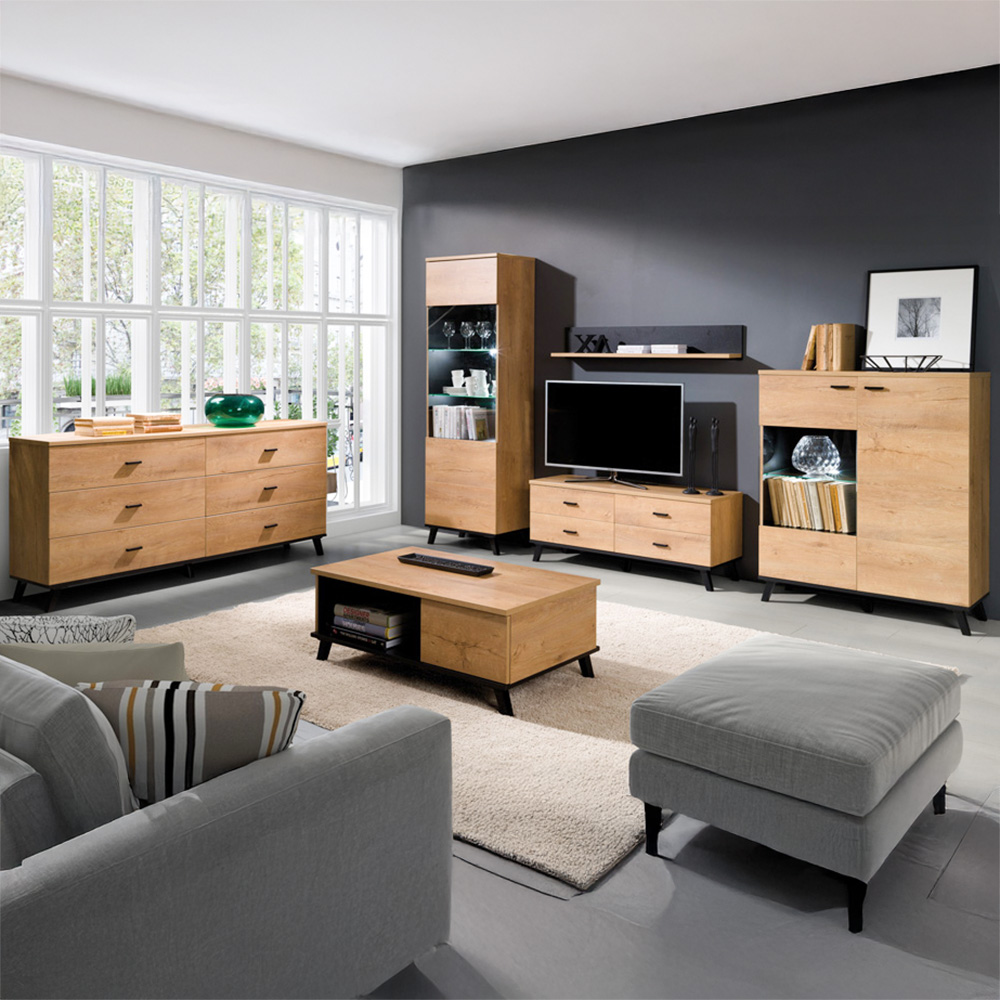 DomůObývákObývákové kolekceObývák JOHN | lefkas světlý/černáObývací stěna JOHN sestava C | 6 dílů | dub lefkas světlý/černá