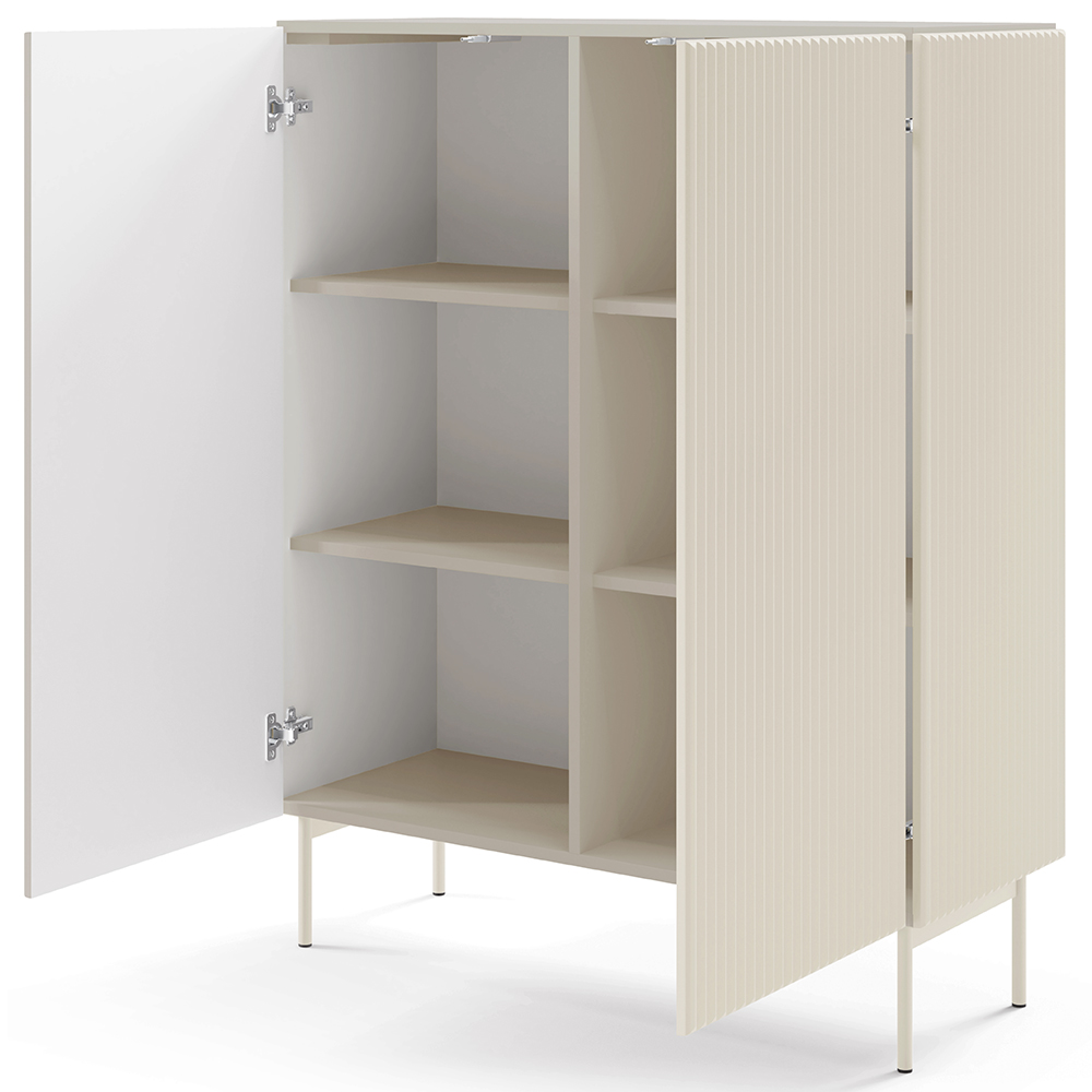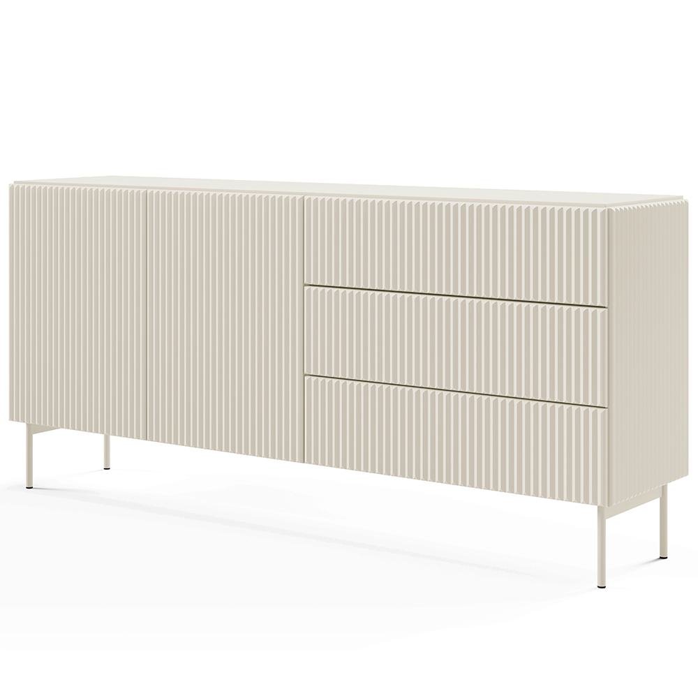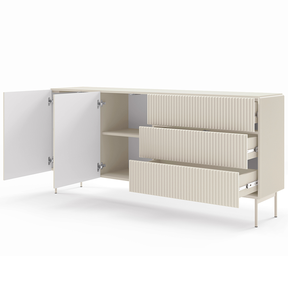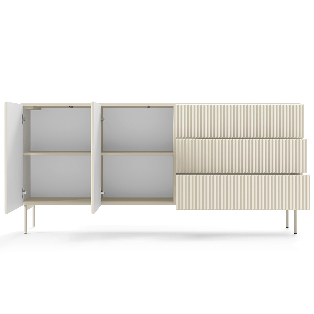 - drážkovaná dvířka a boky z MDF (18 mm) – výrazný prémiový detail.