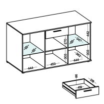TV stolek je vybaven výklopnými dvířky, které poskytují dostatek prostoru pro Vaše multimediální zařízení. Obě vitríny jsou vybaveny laminátovou a skleněnou policí, které Vám nabídnou prostor pro vystavení dekorací, sklenic. Komoda disponuje zásuvkou na ložiškových pojezdech. Za trojicí dvířek komody najdete také praktické police - dvě skleněné a jednu z lamina, které poskytují dostatek prostoru pro Vaše předměty. Stěnu SALSA skvěle doplňují černé úchytky, které dodávají nábytku elegantní vzhled.
