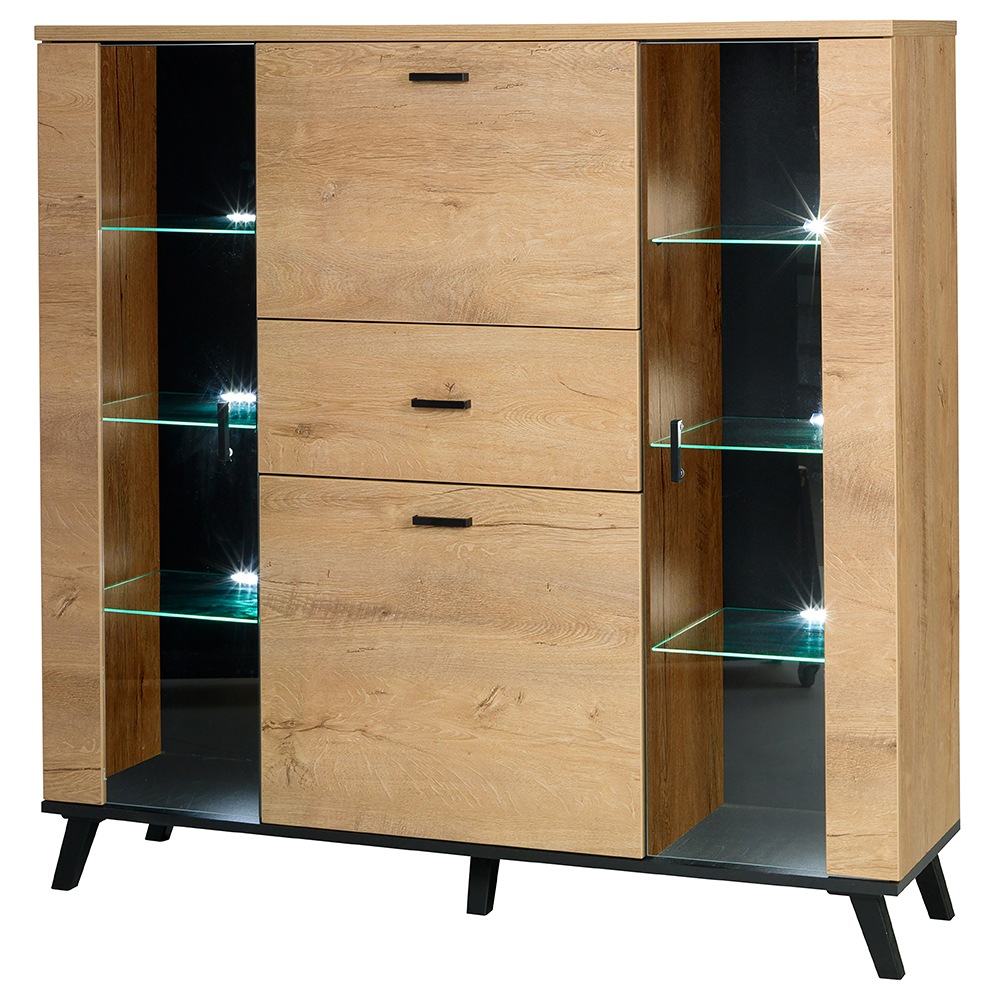 Kolekce JOHN II je skvělou volbou pro všechny, kteří upřednostňují přírodní dřevěné dekory a zároveň chtějí moderní a elegantní vzhled interiéru. Spojení teplého odstínu dub lefkas světlý s výraznými černými prvky vytváří krásný kontrast, který dodá obývacímu pokoji osobitý charakter.