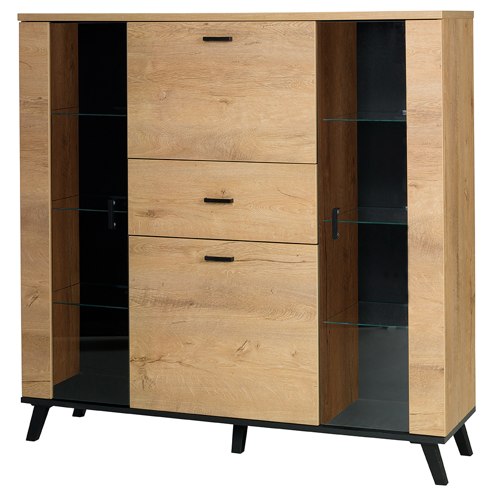 John II komoda 3 | 131 cm | dub lefkas světlý/černá