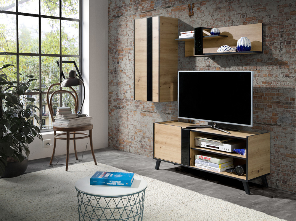 Nábytkový systém FLIX B - Pokud preferujete moderní nábytek, tak právě nábytkový systém Flix bude pro Vás to pravé řešení. Flix nabízíme v barevné kombinaci dub artisan/ černá/černá lesklá a bílá/černá/černá lesklá. Kolekci Flix si můžete objednat po jednotlivých dílech i v předdefinovaných sestavách. Nábytek je vyroben z kvalitní laminátové dřevotřísky o síle 16 mm. Zboží Vám dodáme v demontu s návodem na sestavení a kováním.