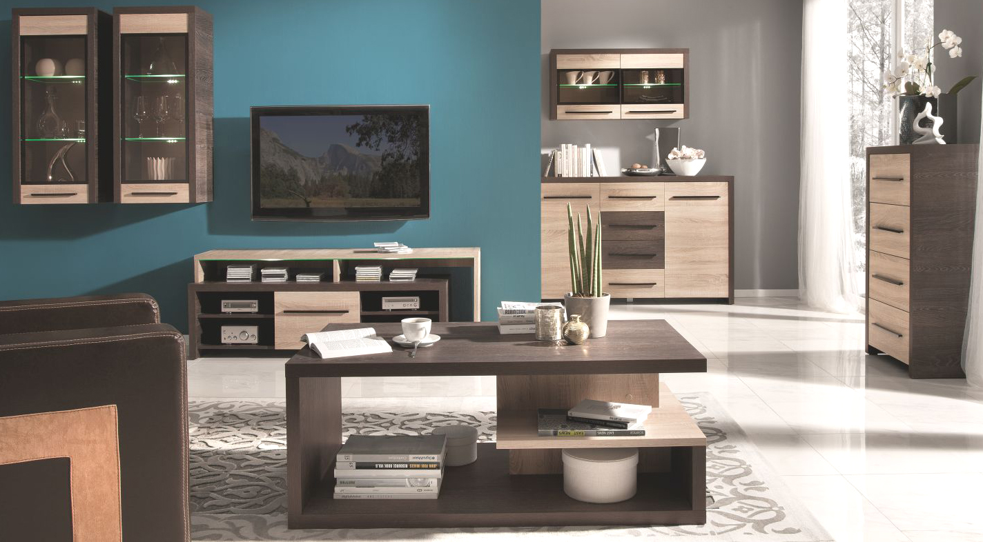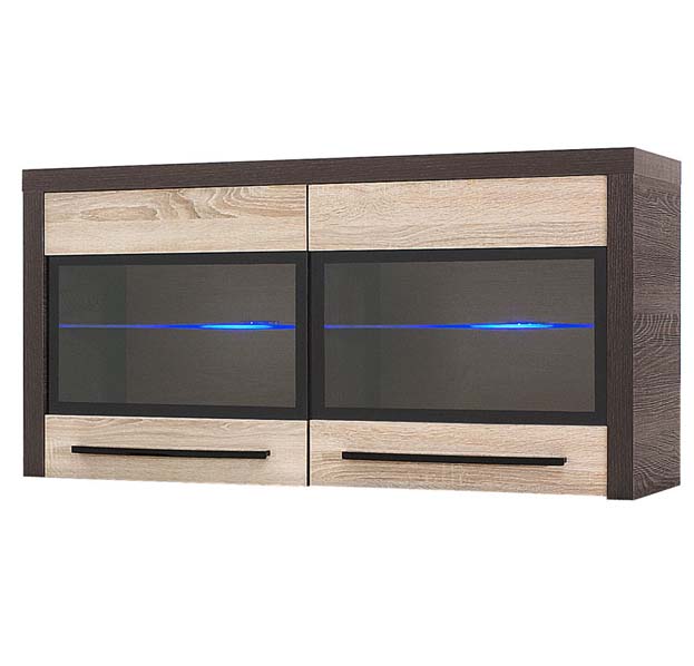 LED osvětlení do závěsné vitríny SZWISZ 2D - Obývací systém Kolder osvěží Váš obývací pokoj nebo ložnici díky osvětleným vitrínám v kombinaci s rustikálním vzhledem. Kolekce Kolder je vyrobena z kvalitní laminátové dřevotřísky. Systém nabízíme v neobyčejné kombinaci dub sonoma/dub canterbury. Zboží Vám dodáme v demontu s návodem na sestavení a kováním.