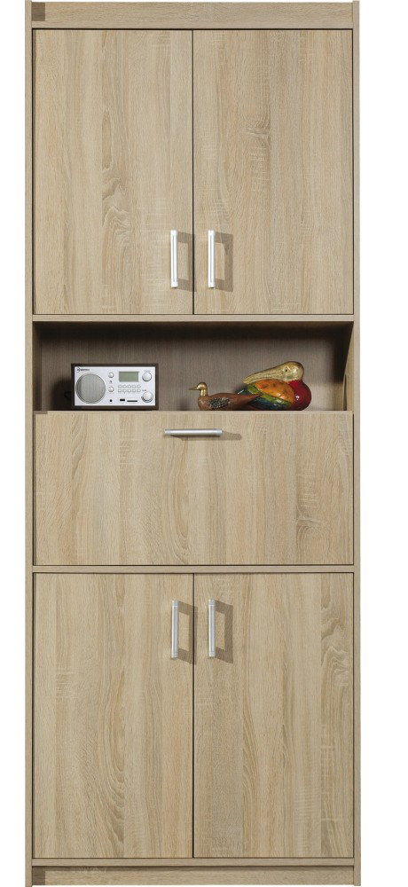 Obývací systém Mega vyniká především svou variabilitou a velkým množstvím úložného prostoru. Jedná se o sektorový nábytek, a proto si můžete sestavit jednotlivé díly podle svého přání. Materiál použitý na výrobu tohoto nábytkového systému je kvalitní laminátová dřevotříska. Hrany jsou chráněny ABS hranou. Sektorový nábytek Mega nabízíme v provedení - dub sonoma nebo dub trufla. Prosklené vitríny je možné doplnit LED diodovým podsvícením skleněných poliček (viz fotografie). Zboží je dodáváno v demontu.