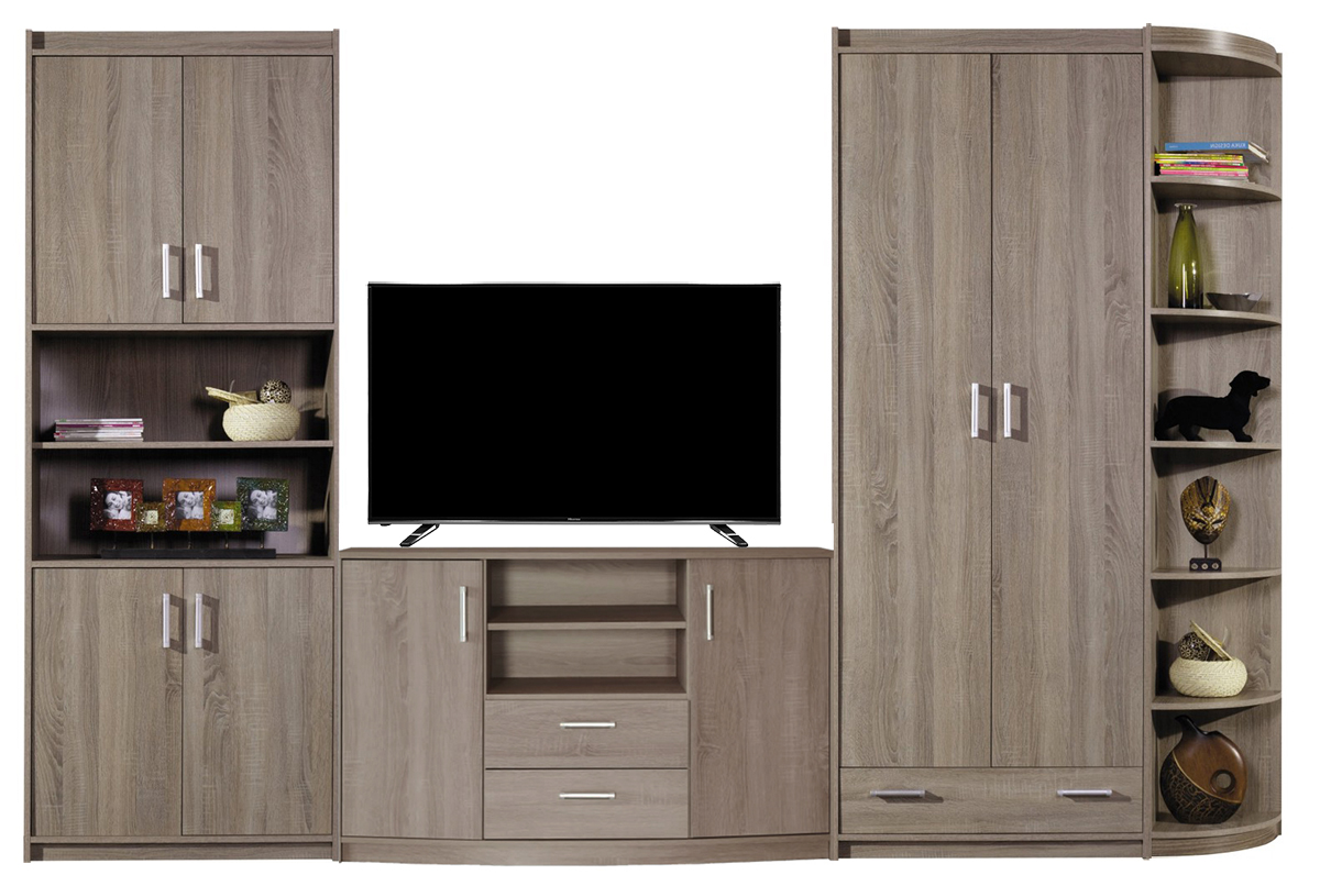 Obývací systém Mega vyniká především svou variabilitou a velkým množstvím úložného prostoru. Jedná se o sektorový nábytek, a proto si můžete sestavit jednotlivé díly podle svého přání. Materiál použitý na výrobu tohoto nábytkového systému je kvalitní laminátová dřevotříska. Hrany jsou chráněny ABS hranou. Sektorový nábytek Mega nabízíme v provedení - dub sonoma nebo dub trufla. Prosklené vitríny je možné doplnit LED diodovým podsvícením skleněných poliček (viz fotografie). Zboží je dodáváno v demontu.