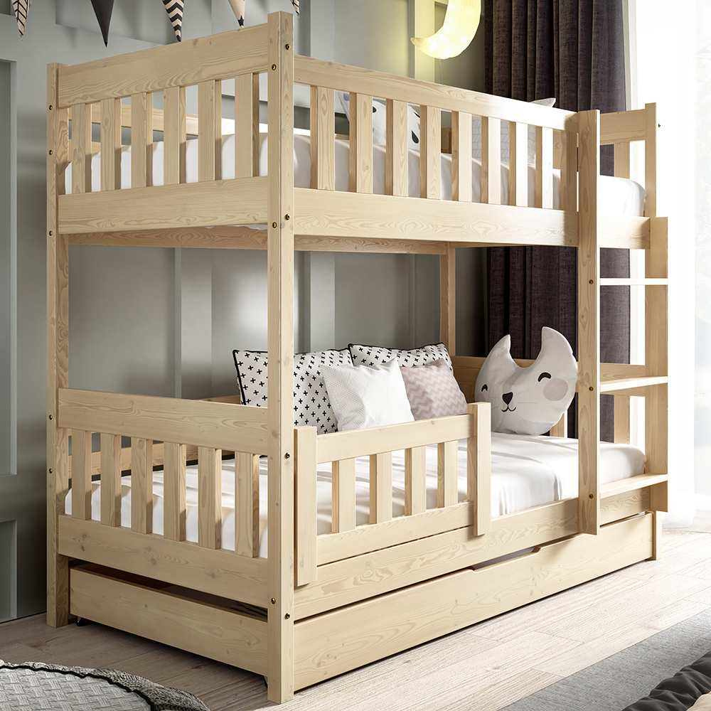 Patrová dětská postel LILA 2x 80x160 cm | + rošty, matrace, zásuvka | přírodní | UNI
