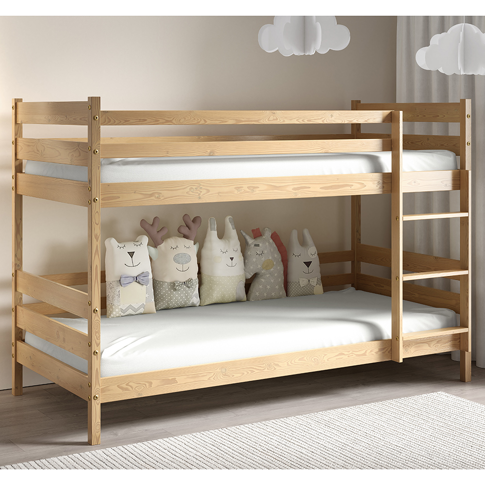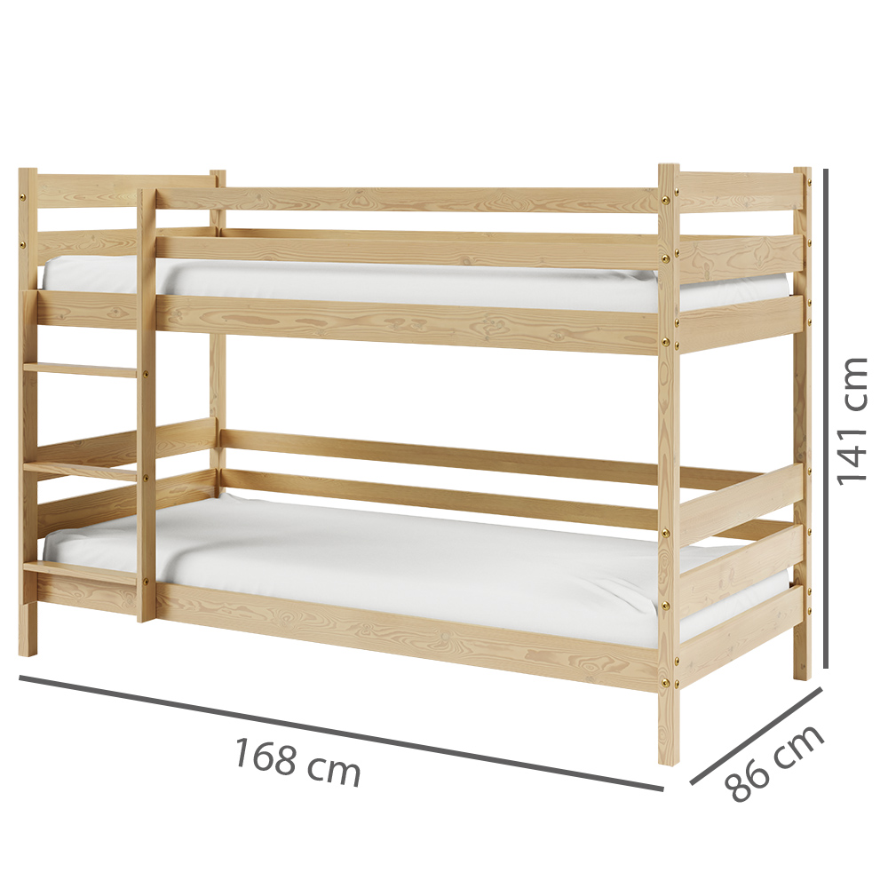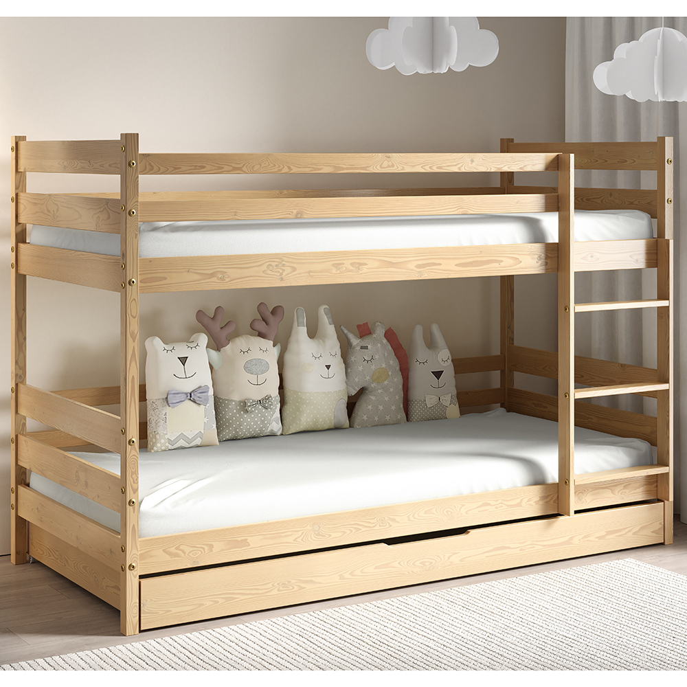 Patrová dětská postel ZUZIA 2x 80x190 cm | s rošty, matrace, zásuvka | přír. | UNI