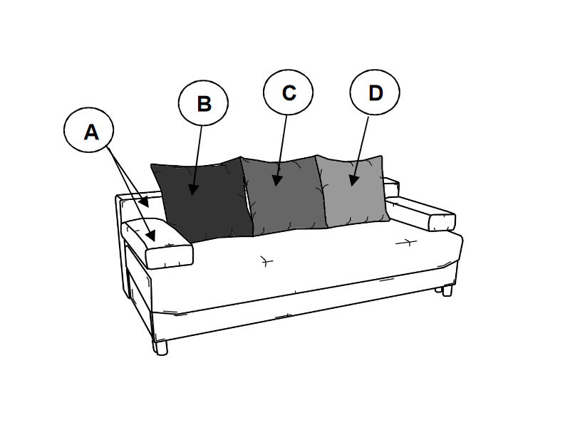 - tkanina A: hlavní tkanina - sedák, záda, malé područky