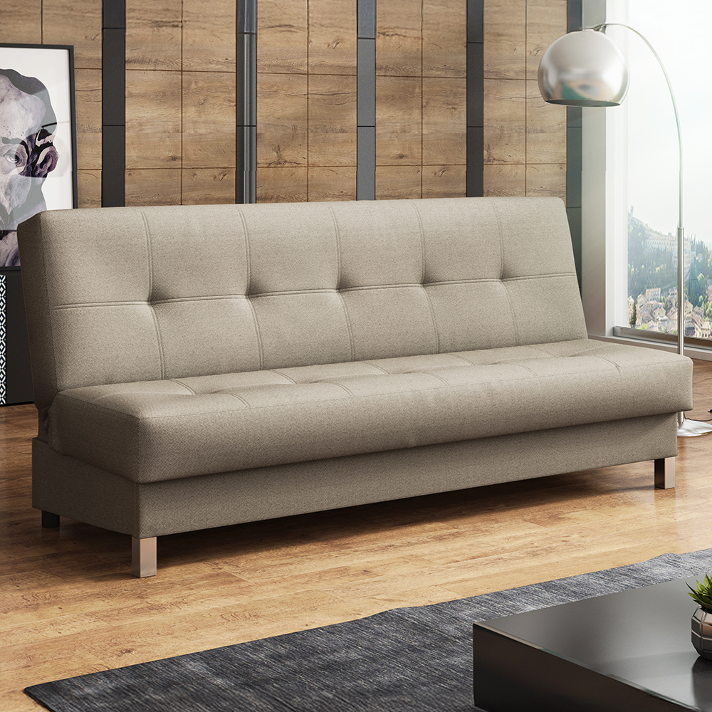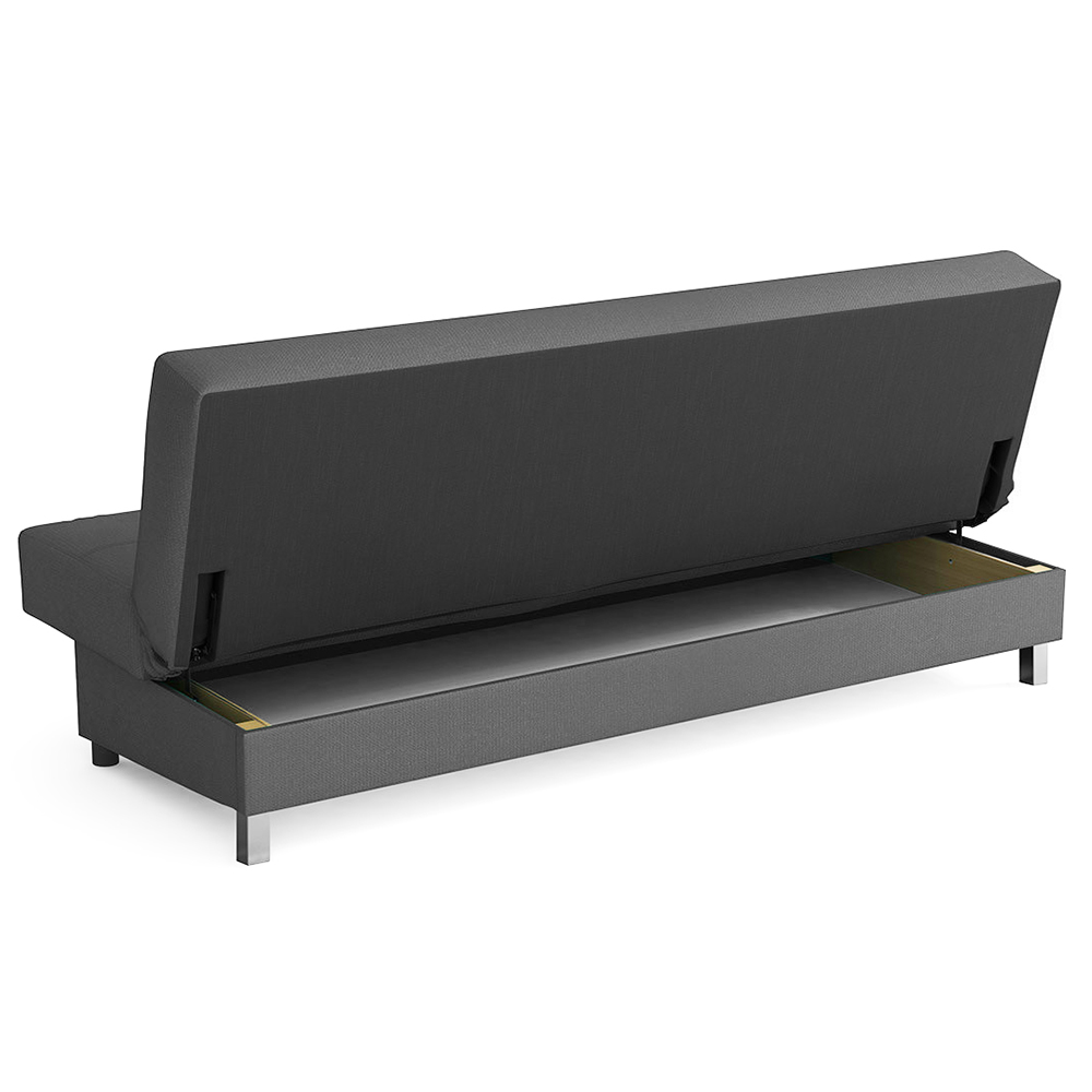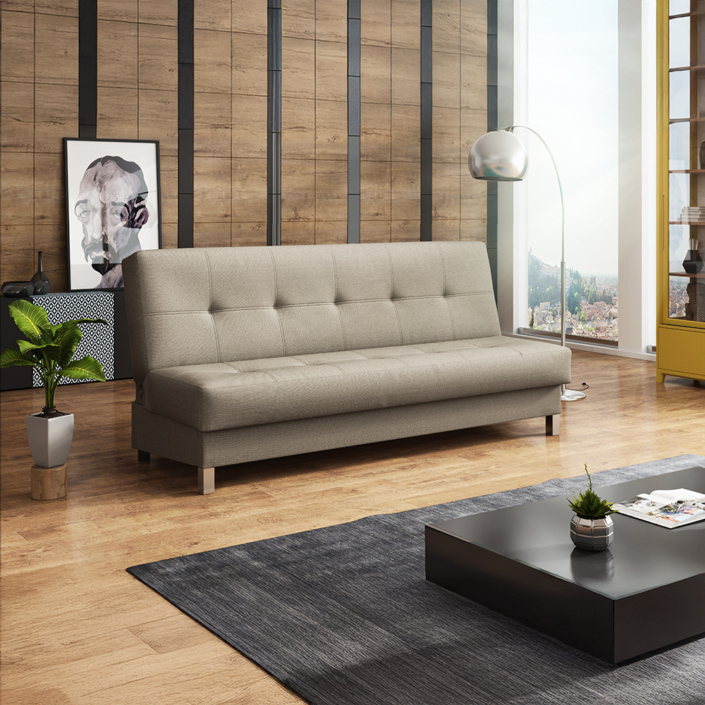 Systém klik-klak umožňuje rychlou přeměnu na lůžko během několika sekund. Pod sedákem se navíc nachází praktický úložný prostor, ideální pro lůžkoviny, deky či polštářky.