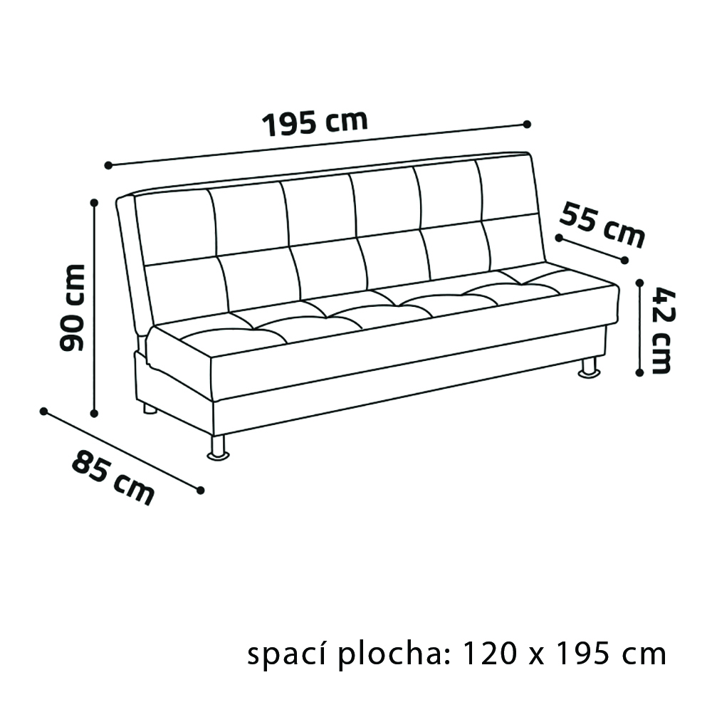 - Praktický úložný prostor – pod sedákem, ideální pro uložení lůžkovin, dek nebo polštářů