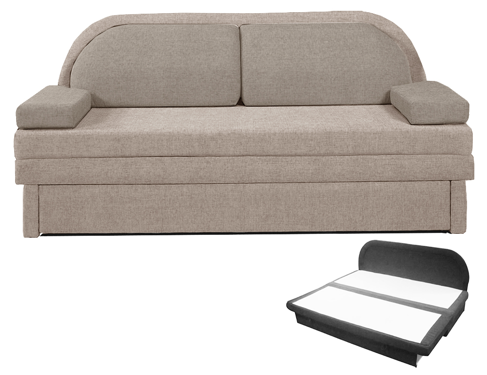 Pohovka Jedrus je zajímavá svým moderním a nadčasovým vzhledem. Pohovka je rozkládací pro příležitostné spaní. Její součástí je i úložný prostor. Kostra pohovky je vyrobena z měkkého a masivního dřeva. Sedák tvoří PUR pěna. Provedení sedáku a opěráku je pevné, opěrné polštáře jsou na volno. Opěráky jsou dostatečně vysoké. Umožní Vám tak velice pohodlné sezení. Rozkládání pohovky má funkci rozkladu vysouvací.